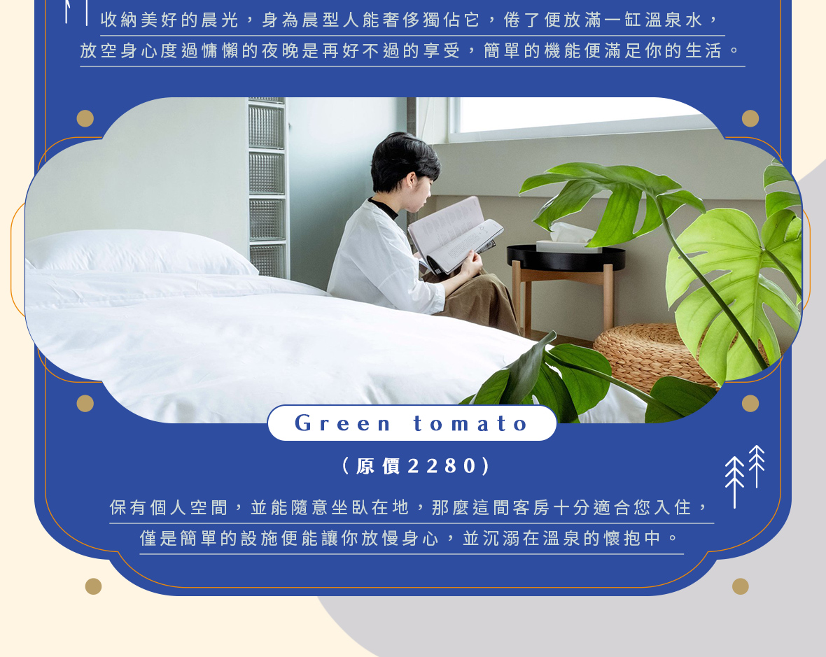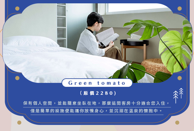 - 得獎內容恕不得轉讓、販售亦不得更換其他商品;住宿規範及相關問題見「 番茄溫泉旅店 」官方網頁說明為準。或其他住宿相關問題請洽服務電話 : 039-882171